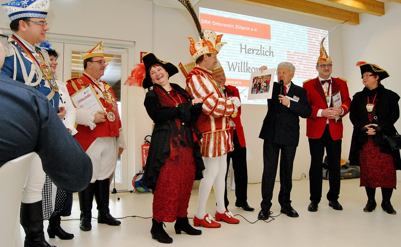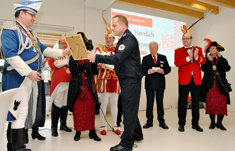 Bei der Ehrung der Blutspende, die obligatorisch zum Neujahrsempfang zählt, gab es ein ausgesprochen seltenes Ereignis: Für seine sage und schreibe 175. Blutspende erhielt Werner Eichler eine besondere Auszeichnung. „Ich bin froh, dass wir die Urkunde noch für den heutigen Tag bekommen haben“, sagte Heinen, denn die Blutspende sei erst Freitag zuvor gewesen. Ihm, aber auch den übrigen Blutspendern, gratulierte auch Petra Klostermann, die vom DRK-Blutspendedienst West erschienen war. Insgesamt brachten es die zu ehrenden Blutspender zusammen auf 1.800 Blutspenden. „Das sind 900 Liter Blut“, so Heinen. Bei den Zülpicher Karnevalsgesellschaften bedankte sich Lothar Henrich mit einer Urkunde für 11 Jahre gemeinsame Prinzenblutspende.