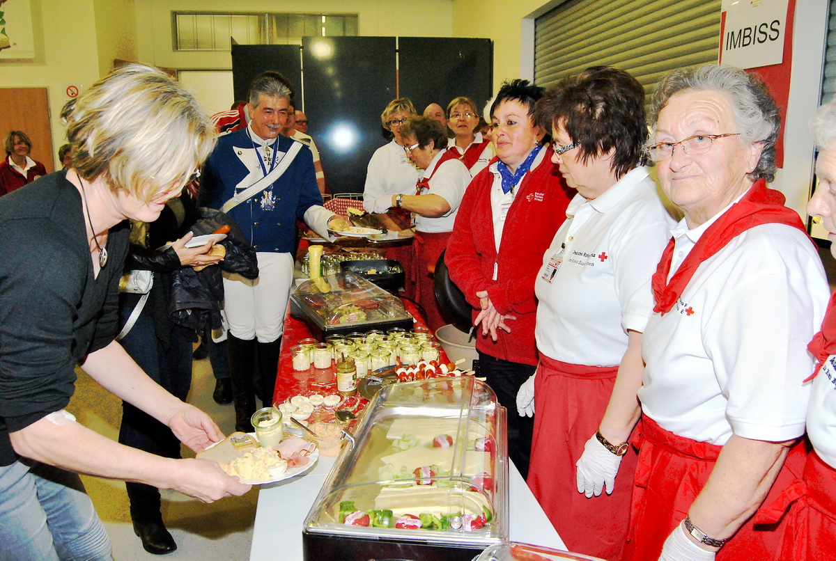 Das Rotkreuz-Küchenteam hatte sich wieder einmal selbst übertroffen und ein üppiges Büffet gezaubert, das passend zur „fünften Jahreszeit“ auch Deftiges und Süßes bot.