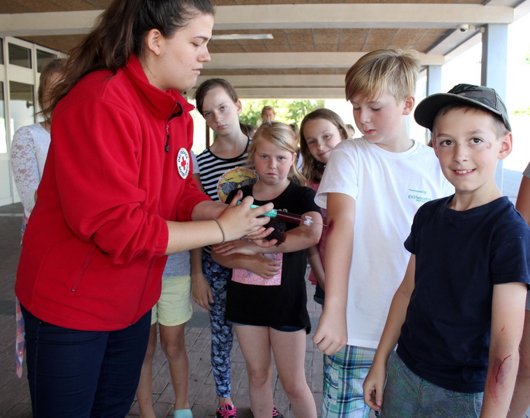 „Wir wollen die Kinder an das Thema Erste Hilfe ranführen“, erzählt Patrick Dost. Und natürlich weiß das DRK auch, dass so eine Aktion Werbung für die eigene Arbeit ist. Nicht wenige Kinder finden Gefallen an der Hilfsorganisation und treten ins Jugendrotkreuz ein, was ab sechs Jahren möglich ist.
