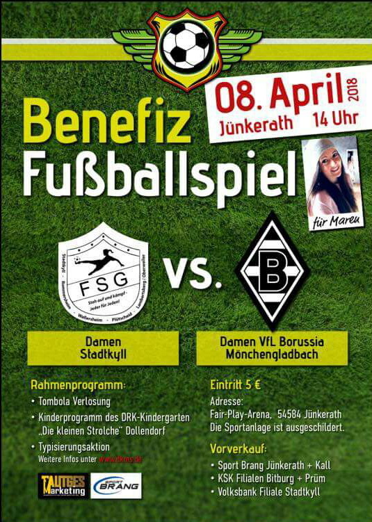 Am 08. April um 14 Uhr findet in Jünkerath eine Benefiz Fußballspiel zwischen der Profi Damen-Mannschaft VfL Borussia Mönchengladbach und der Damen-Mannschaft Stadtkyll statt. Weiterlesen